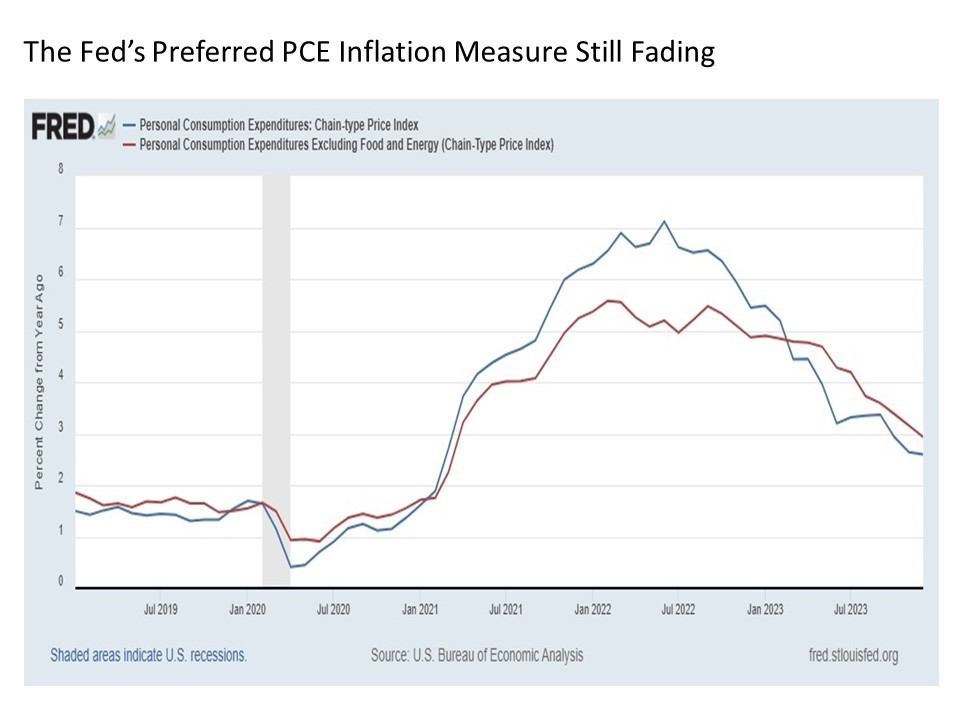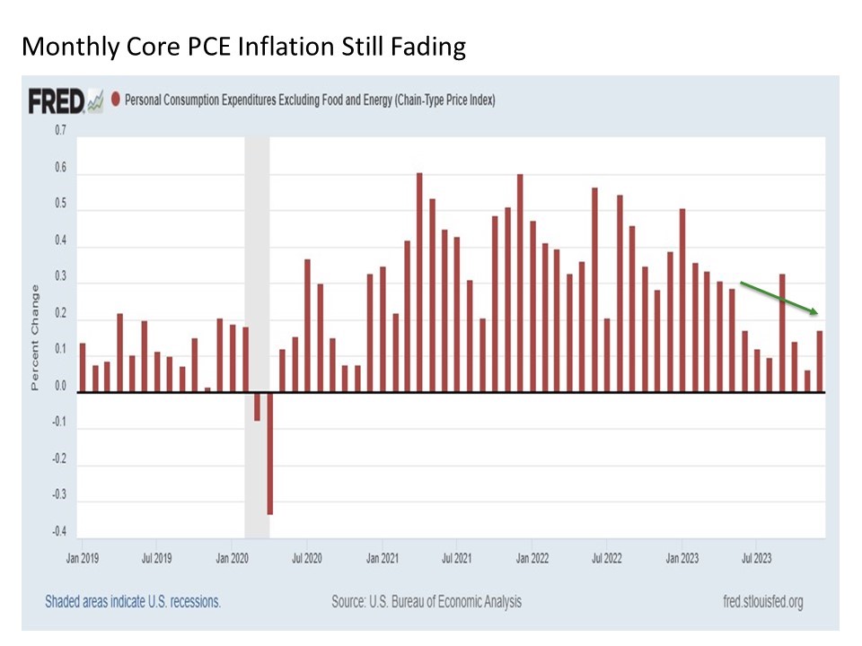 While we won’t have the latest reading for January for a couple of weeks, the trend in the headline and core PCE price indices remain more definitely lower. In addition, these readings are considerably better on an absolute basis at 2.60% on headline annual PCE inflation and 2.93% on Core PCE inflation. These are much closer to the Fed’s 2% target rate.